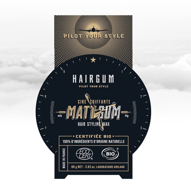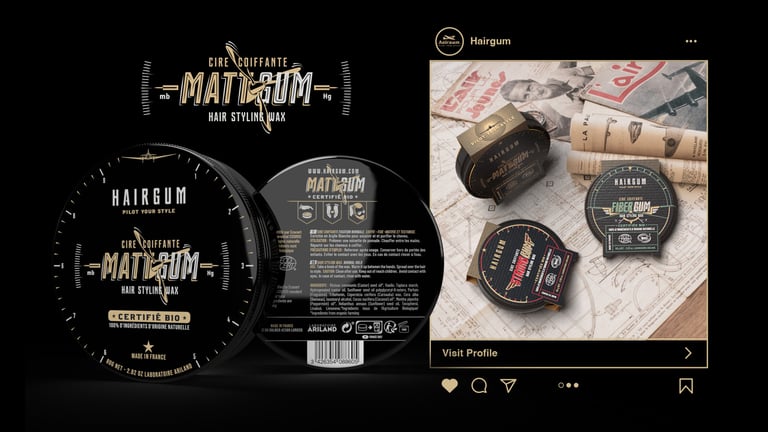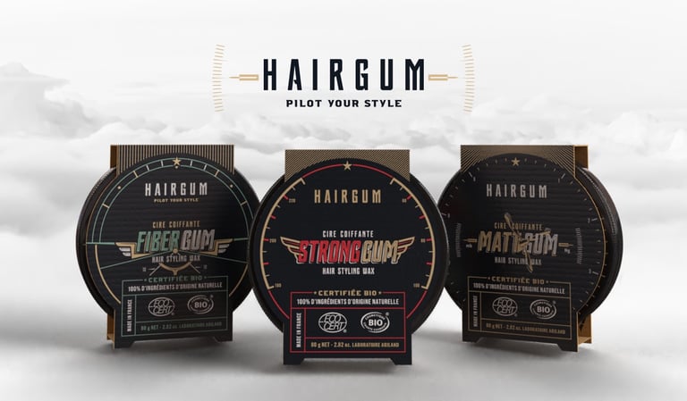 Projet de conception de packaging réalisé pour Hairgum, marque française spécialisée dans les produits capillaires masculins. Après plus de 30 ans de présence sur le marché, la marque amorce une nouvelle étape stratégique avec le lancement d’une gamme biologique certifiée ECOCERT, développée à partir d’ingrédients naturels afin de répondre aux évolutions du secteur cosmétique. Dans ce contexte, j’ai assuré la direction artistique complète du packaging de la nouvelle ligne de cires bio, en conciliant héritage visuel et modernisation de l’identité.