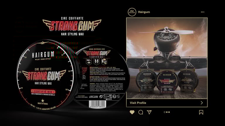 Le projet s’est articulé autour d’une réflexion globale sur le branding : préserver l’ADN vintage de Hairgum, ses références aéronautiques emblématiques et son imaginaire mécanique, tout en élevant le positionnement vers un univers premium. J’ai proposé une évolution du logo vers une signature plus neutre, solide et professionnelle, renforçant la crédibilité de la marque et sa lisibilité. Cette nouvelle base typographique m’a permis de développer un système graphique cohérent, où chaque produit possède une identité distinctive tout en s’inscrivant dans une unité de gamme forte.