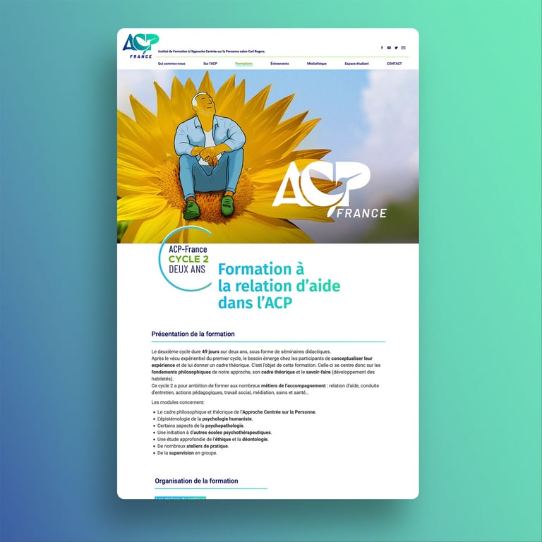 Dans ce projet, j'ai non seulement mis à profit mon expertise, mais j'ai également appris à connaître la philosophie humaniste et les valeurs profondes que l'institut transmet dans ses formations aux futurs psychothérapeutes.